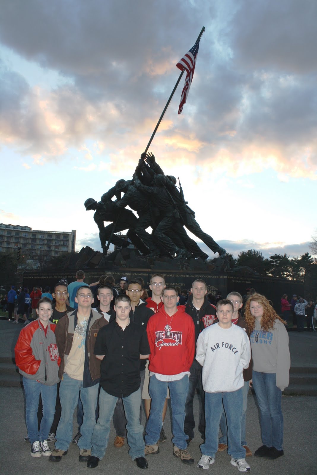 On our last day, we went by all the War Memorials around the Reflecting Pool. The Vietnam Memorial was sobering with 58,000 names on it. The Korean Memorial made you feel like you were there because the statues of the soldiers were so life-like. The WWII Memorial gave us some idea of the enormity of the sacrifice by millions. And, finally, the Iwo Jima showed us that determination and sacrifice win wars.